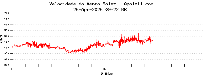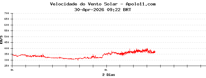 Neste momento, a velocidade do vento solar está oscilando entre 300 e 400 quilômetros por segundo.
