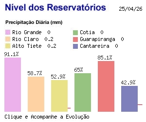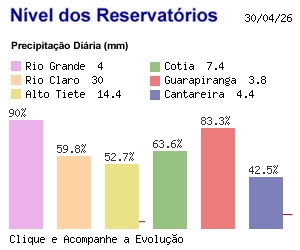 O gráfico à direita é um retrato diário do nível das represas que abastecem a Grande São Paulo.