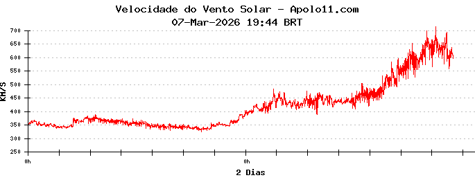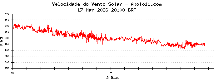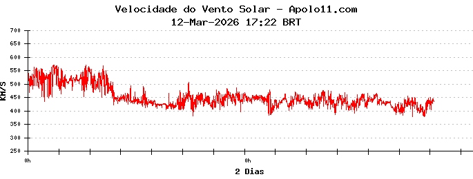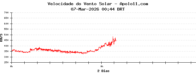 Neste momento, a velocidade média do vento solar é de 450 quilômetros por segundo.