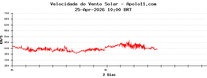 Neste momento, a velocidade do vento solar está oscilando entre 300 e 400 quilômetros por segundo.