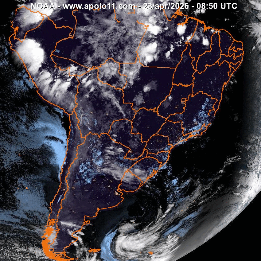 Nesta imagem estão visíveis os países do continente sul-americano, com destaque para o Brasil que aparece com a divisão por estados.